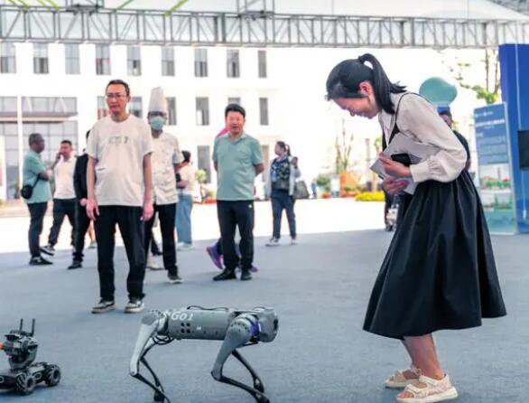 在 2023 年成渝區域雙城經濟圈工作教育活動周辦學成果展上,重慶科創工作學院與企業聯合研製的機器狗在現場與觀眾互動(2023 年 5 月 17 日攝)黃偉攝 / 本刊工作教育發揮著服務經濟展開和支撐工業現代化的重要作用,肩負著向社會輸出高素質技術、技術人才,培育能工巧匠、大國工匠的責任,是推進我國製造業轉型晉級的不竭動力。